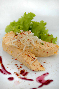 Luego, desmenuzar el salmón y mezclarlo con la crema, la gelatina hidratada y las dos yemas de huevo.