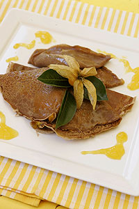 Añadir la mantequilla derretida y dejar reposar una hora. Preparar los panqueques usando 3 cucharadas de batido para que queden muy delgados.