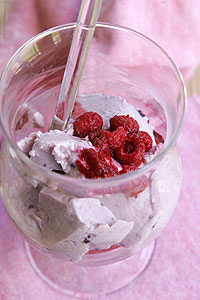 Mezclar la gelatina con el yogur, moras, jugo de limón, agua y azúcar y batir con batidora eléctrica hasta que la mezcla esté cremosa.