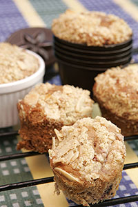 Para la cubierta: Mezclar todos los ingredientes. Espolvorear la mezcla sobre cada quequito.