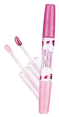 Superstay powergems que es un brillo diamante extremo y duradero. Este labial doble se presenta con un color luminoso rosa que permanece 12 horas y un brillo de diamantes también ultra duradero.