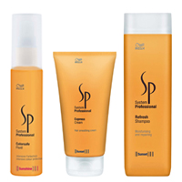 SP System Professional que pretende dar protección al cabello y además facilitar su regeneración. Con el shampoo Sunset refresh, la crema Expres y el fluido Sunshine colorsafe se puede obtener un resultado profesional, mejorando el brillo, la suavidad y la limpieza ya que logra eliminar todos los residuos de cloro y sal que trae el agua.