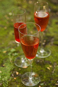 Servir en copas de champaña 1 medida de almíbar, 1 de cointreau y rellenar con champaña, agregar el palito de frambuesas congeladas.
