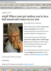 1000 Awesome Things pretendía subrayar los placeres simples de la vida, a menudo dados por sentado, como encontrar dinero olvidado en un bolsillo, ponerse ropa interior directamente salida de la secadora, o arreglar aparatos electrónicos con un golpe.