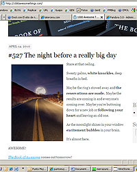 Entonces, entre sus dramas personales y las dificultades de una crisis económica, también firmó un acuerdo para un libro, y "The Book of Awesome", que contiene 200 de sus cosas sensacionales, sale esta semana.