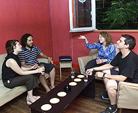 En el evento más reciente, unas 20 personas van de mesa en mesa y entablan conversaciones cortas al compás del tema de Roxy Music “Love is the Drug”. Cuando cambia de tema, se inicia otro encuentro.