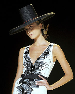 Hoy fue el turno de la venezolana Carolina Herrera, que desplegó su propuesta en el Lincoln Center. Según reportes locales, la silueta que delineó la colección fue una envolvente blusa blanca de sarga con cintura alta y pantalones largos, sueltos y levemente plisados combinados con un sombrero jardinero negro de ala gigante.