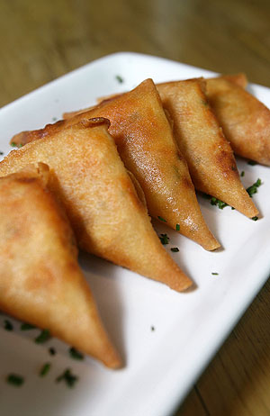 Hacer una especie de empacadoras triangulares con la más de arroz rellenándolas con la mezcla de camarones, freír y acompañar de la salsa de tamarindo.