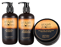 Argan Oil Nourishing shampoo y acondicionador y Oil Nutrition Infunsing Mas, una máscara enriquecida con vitamina E, ácidos grasos esenciales Omega 3 y 9 y que pretende darle flexibilidad, suavidad y brillo a tu pelo.