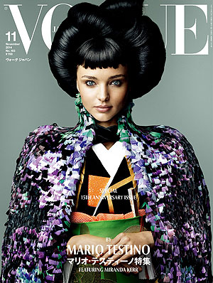 TOKIO.- La modelo australiana Miranda Kerr se ha vestido de "geisha" y ha posado frente al objetivo del fotógrafo Mario Testino para protagonizar la portada del número de noviembre de Vogue Japón, con la que la edición nipona celebra su 15 aniversario.