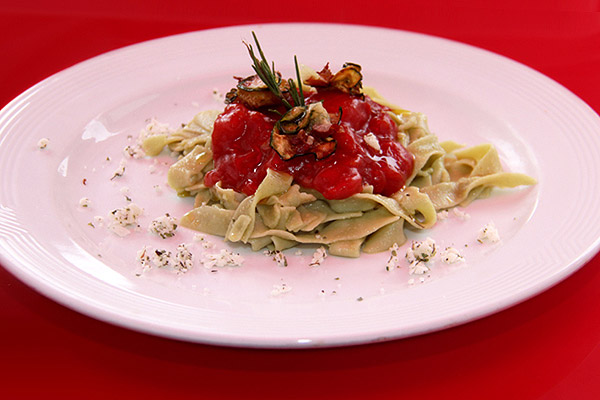 Una vez lista la salsa, caliente un sartén y agregue mantequilla, saltear. Disponga en una fuente onda y salsear con la exquisita salsa pomodoro.