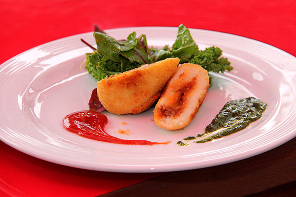 Para apanar disponga de 2 huevos batidos en un bowl, untar las papas y pasar por pan rallado. Realice fritura onda.
