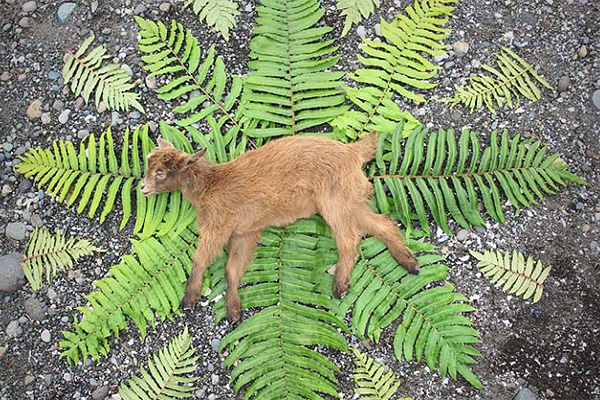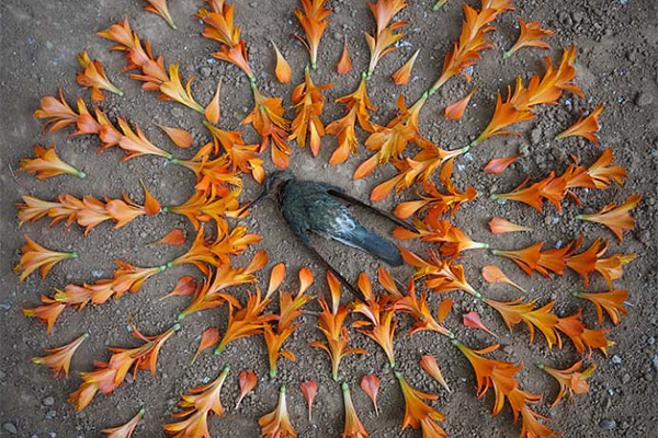 Es un catálogo de imágenes en el que la fotógrafa retrató verdaderos funerales de diversos animales. A través de imágenes simétricas, montadas cromáticamente, gallinas, pájaros, gatos, perros, ratones e incluso un chivo se ven descansando sobre la tierra, en paz, rodeados de un aura vegetal confeccionado por la artista con objetos que tomó del mismo espacio donde las criaturas murieron. Un homenaje que primero bautizó como “Servicios funerarios”, pero que renombró con el fin de darle mayor simbolismo a un trabajo en el que explora la naturaleza –su espacio de felicidad–, el valor de la vida y la potencia de la muerte.