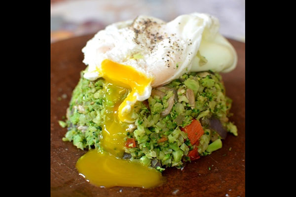Arroz de brócoli y huevo pochado