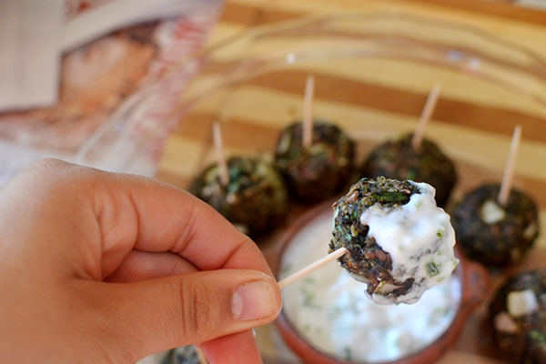 En un recipiente apto para horno, agregar una cucharadita de aceite de oliva. Con las manos ir armando las bolitas y ponerlas en el recipiente. Antes de hornear agregar otro chorrito de aceite de oliva sobre las bolitas. Hornear 20 minutos a 180°C. Hasta que se vean doradas.