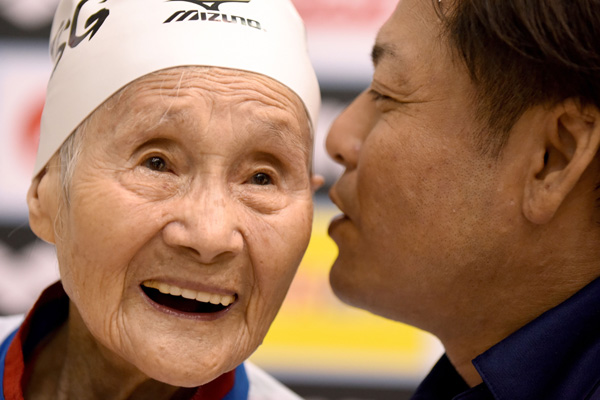 "Nadar me hace feliz, por eso lo hago. Cuando nado estoy en mi pequeño mundo", dijo la anciana, quien es un ejemplo para las personas mayores de Japón, país con una de las esperanzas de vida más elevadas del mundo.