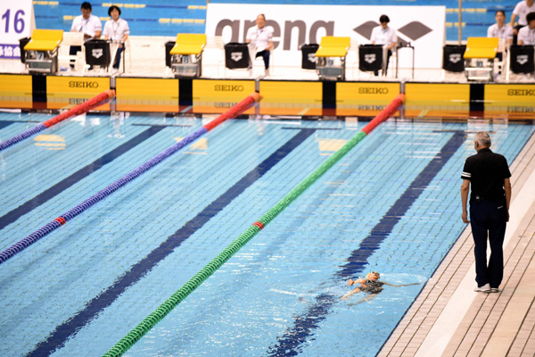 Con los lógicos problemas auditivos, no escuchó los gritos del público cuando terminó su octavo y último largo de la piscina, cuando se disponía a realizar uno extra antes de que los jueces le avisaran del final de la prueba.