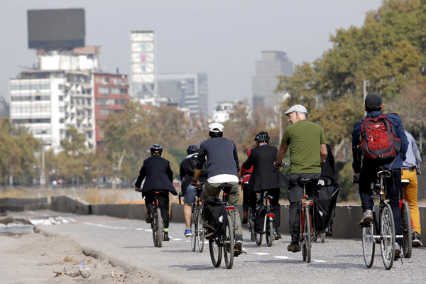 “Geográfica y climáticamente, Santiago es amable con quienes pedalean. La ciudad se cobija en una de las montañas más altas del mundo, pero es sorpresiva y afortunadamente plana, pasando desde una altura de 475 metros en el oeste a 700 metros en las adineradas Las Condes y Vitacura”, escribió Long, agregando que llueve poco en la capital chilena, en comparación a metrópolis como Londres.