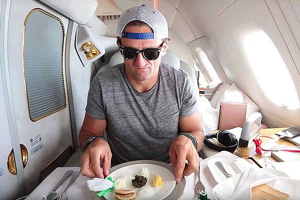 SANTIAGO.- "Uno de los mejores días de mi vida", fueron las palabras con que Casey Neistat describió la experiencia que vivió a bordo del vuelo de Emirates Airlines que lo llevó de Dubai a Nueva York. Y no es que durante el trayecto no haya habido turbulencias o a su lado se haya sentado una mujer estupenda y simpática, sino que porque el famoso vlogger fue privilegiado con un upgrade que le significó viajar 14 horas en un asiento de primera clase de ¡14 millones de pesos!