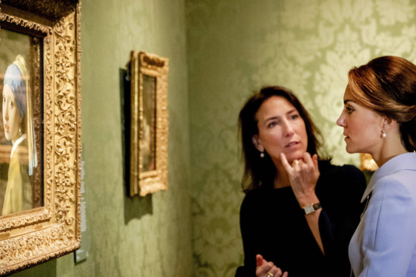 La obra maestra de Vermeer, también conocida como "La Mona Lisa holandesa", está expuesta en el histórico museo Mauritshuis, situado en el centro de La Haya, donde más tarde Kate vio 22 cuadros de maestros holandeses prestados por la British Royal Collection para esta exposición.