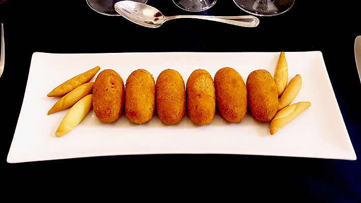- Para emplatar: colocar las 6 croquetas en un plato ovalado y para adornar un poco de lechuga y 2 medios tomates cherry.