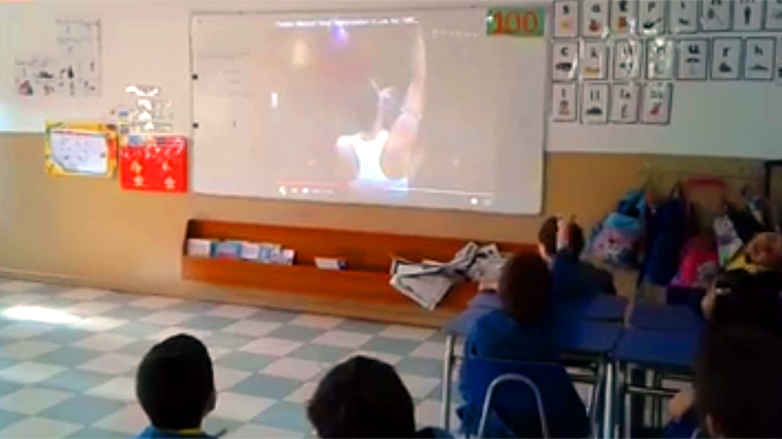 La escena vista ya más de 22 mil veces fue grabada ayer, cuando Carolina Castel, profesora de inglés del establecimiento, les puso a los niños un video del fallecido líder de Queen, con motivo de los 25 años de su muerte.