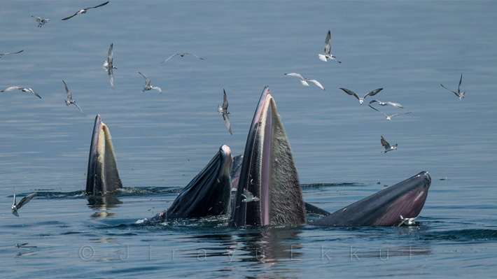 Esos bancos de anchoas, atraídos por la abundancia de sedimentos al final de la estación lluviosa -de septiembre a diciembre- son la causa de la migración de las ballenas hacia el norte del golfo de Tailandia. "¡Su forma de alimentarse es un fenómeno de biomecánica sin par!", se entusiasma Jirayu Ekkul, de 31 años, un apasionado del buceo y de la fotografía de animales que acondicionó un antiguo barco de pesca para transportar a unos 40 turistas.