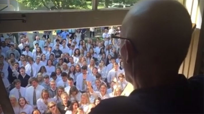 Millones de veces fue visto el video en el que más de 400 estudiantes dan una serenata de alabanzas a Ben Ellis, un querido profesor de una escuela secundaria de Nashville, Tennessee, quien padecía un agresivo cáncer de esófago.