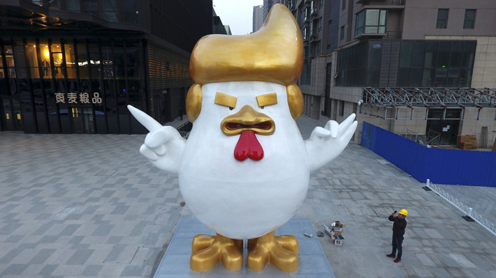 BEIJING.- Una estatua de más de 10 metros de altura de un pollo gigante con atributos que lo asemejan al Presidente electo estadounidense, Donald Trump, ha sido erigida en la ciudad septentrional china de Taiyuan, según mostraron fotos publicadas por el oficial Diario del Pueblo.