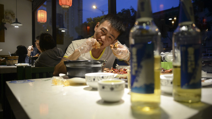 "Si un sichuanés pasa un día sin comer un plato picante es desgraciado. Y la cabeza de conejo está salpimentada como se debe. ¡Nos vuelve locos!", sonríe Ma, una joven sentada en una mesa con unos amigos. "Lo mejor es la lengua, tierna y sabrosa", añade.