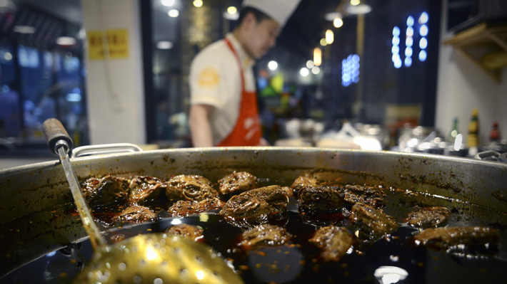 La preparación de las pequeñas cabezas se realiza siguiendo una receta que asegura fuertes sabores. "Primero hay que desangrar a los conejos" para luego dejar "marinar" las cabezas en un caldo picante durante horas, indica el chef del "Shuangliu Laoma Tutou", Yin Dingjun.