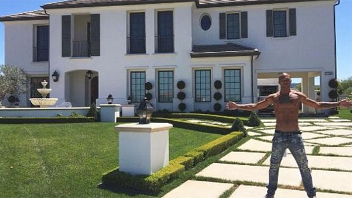 En otra imagen, Meeks posa frente a su mansión, con la lectura "Dios es bueno".