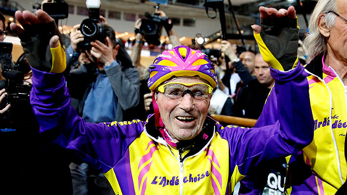 Un numeroso público acudió al velódromo para acompañar en su hazaña a este hombre que nació el 26 de noviembre de 1911 en Amiens (norte de Francia) y que asegura que su única "poción mágica" es añadir un poco de miel a su botellín de agua.