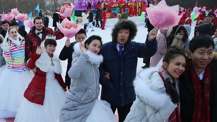 BEIJING.- El Festival de Hielo y Nieve de Harbin, uno de los mayores del mundo, celebró hoy la boda de 18 parejas chinas, que se atrevieron a dar el "sí " en las bajísimas temperaturas de esta ciudad nororiental china, que oscilaron durante la jornada entre una mínima de -23 grados y una máxima de -8.