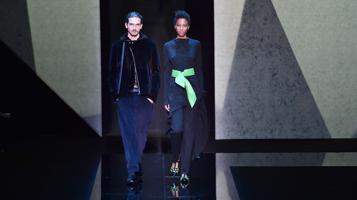 Los abrigos largos de vestir sirvieron tanto para hombres como para mujeres, y es que Giorgio Armani aprovechó la ocasión para adelantar algunas de las prendas de su colección otoño/invierno en moda femenina.