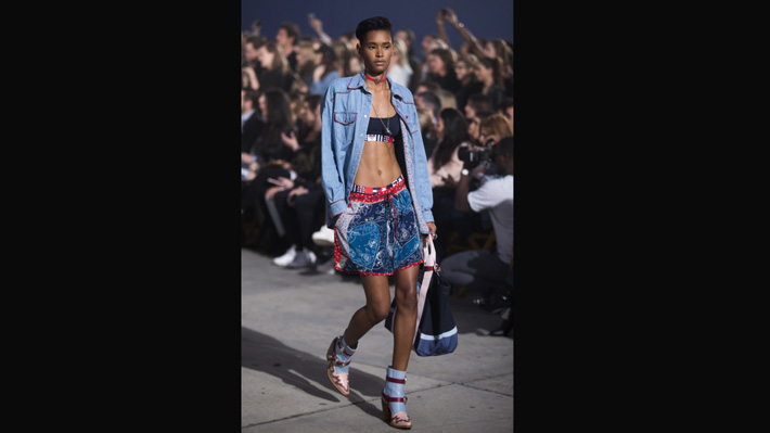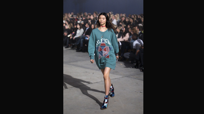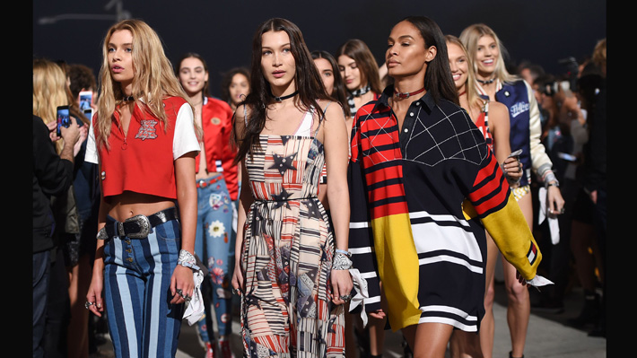 Alejado por primera vez de las pasarelas de Nueva York, Hilfiger mostró sus colecciones "TommyNow" y "TommyXGigi" en un evento que, más que un desfile de moda típico, fue una experiencia de entretenimiento multidisciplinar con música en directo, acróbatas, malabaristas, patinadores, muros con pinturas de grafiti, atracciones de feria y camionetas de comida durante toda la tarde.
