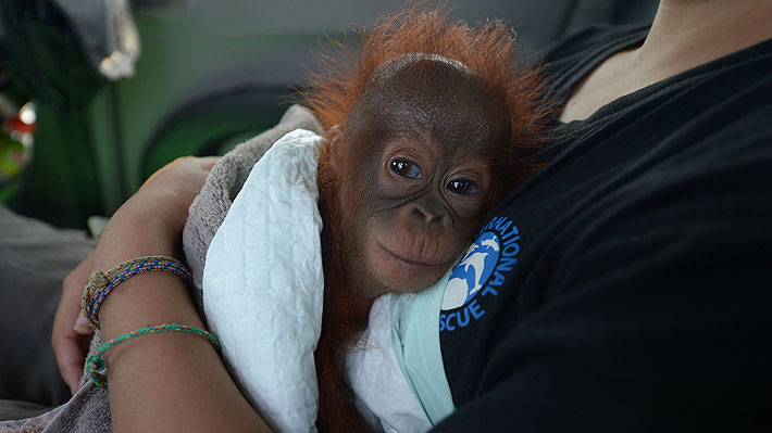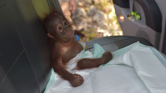 KENDAWANGAN.- Un bebé orangután de Borneo, adoptado como animal de compañía en una familia según una práctica frecuente en Indonesia, fue rescatado por defensores de los animales que lo quieren ayudar a regresar a su hábitat natural.