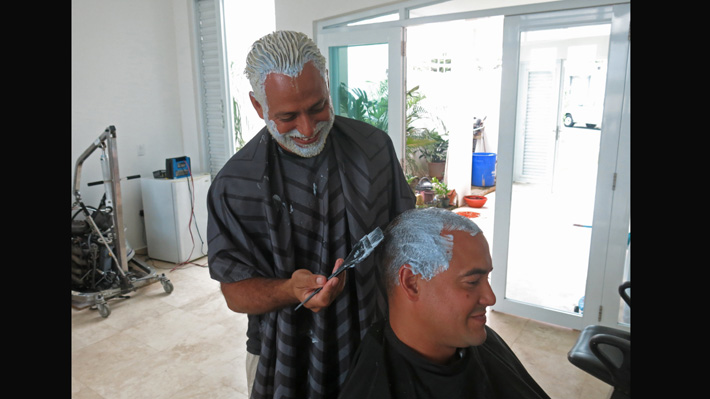 Rodríguez se quejó de una sensación quemante durante el proceso de dos horas que requirió el teñido. "¡Lo que sea por mi isla!", justificó, mientras alzaba un brazo para alentar al equipo.