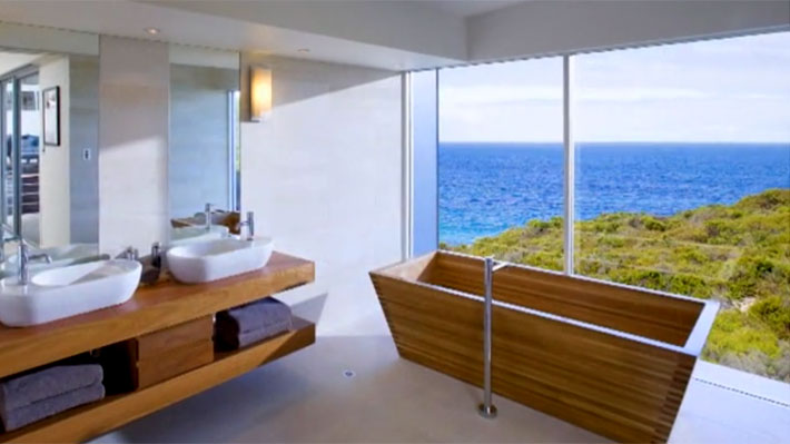 Este hotel ofrece una visión más que increíble de la costa y el baño de la Osprey Pavilion está frente a un ventanal que permite admirar toda la belleza de la Isla Canguro.