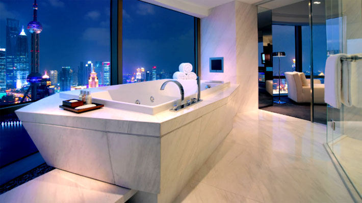Definitivamente nada mejor que relajarse con un baño de tina mientras se disfruta de una metrópolis como Shanghai y la cadena Hyatt lo sabe por eso su bañera ofrece además de comodidad una visión como pocas.