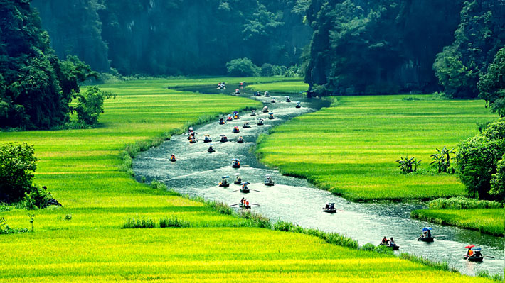 La provincia de Ninh Binh se ubica a 100 kilómetros de la capital de Vietnam, Hanoi, en el extremo sur del Delta Rojo.