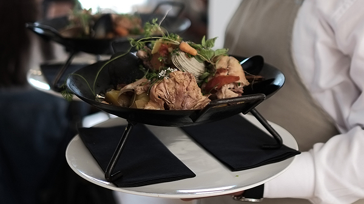 En Puerto Varas también se puede encontrar un pulmay, la clásica preparación de curanto en olla con caldo, y una cremosa polenta con ragout de champiñones y huevo pochado.