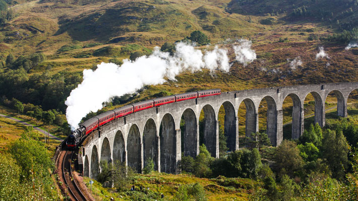 "De sus 6 rutas escénicas principales, las miradas se las lleva la West Highland Line, hoy famosa por ser la que aparece en las películas de la saga Harry Potter"