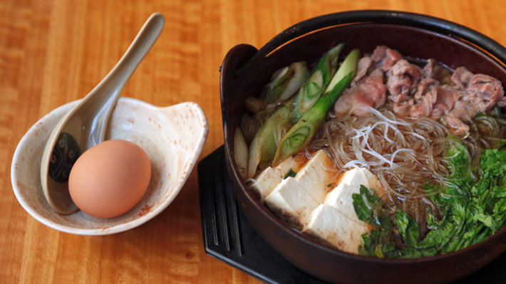 Al parecer, saber cuándo hay que poner los ingredientes líquidos es la clave de un buen sukiyaki. El proceso casi tarda más en contarse que en desarrollarse: se hace en un momento, y hay que cuidar de no pasarse de cocción.