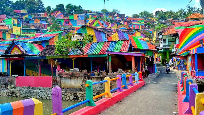 El pequeño pueblo de Indonesia, Kampung Pelangi, era prácticamente desconocido para la gran mayoría de los viajeros. Ubicado en el centro de la isla de Java, en el distrito de Semarang, este villorrio era hasta poco un suburbio pobre, lleno de suciedad y poco amigable. Hoy es conocido como una de las “rainbow village” de este país que se reparte entre el Sudeste Asiático y Oceanía, luego que sus 232 humildes casas fueran pintadas con bellos y llamativos colores, transformándose en un destino ideal para los turistas que buscan escenarios únicos para una buena fotografía.