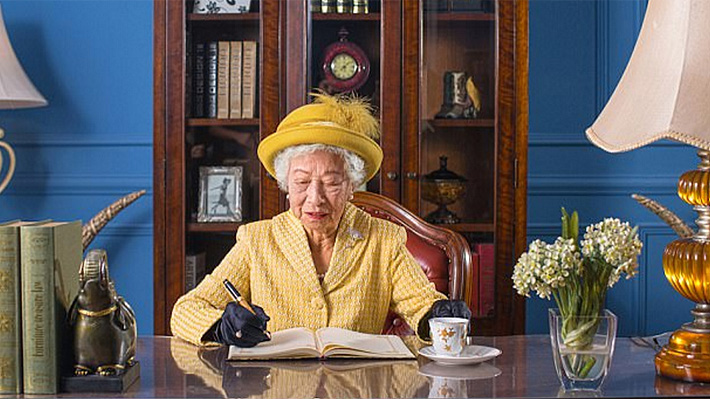 Zheng Suzhen, abuela de 15 nietos y 17 bisnietos, saltó a la fama luego de que el marido de una de sus bisnietas, el fotógrafo chino Ding Guoliang (31), publicara en Weibo –la red social más popular de China- las fotos de esta anciana vistiendo atuendos similares a los que luce Isabel II.