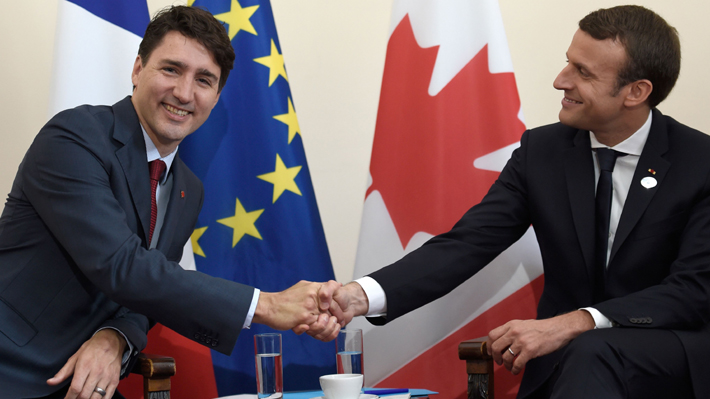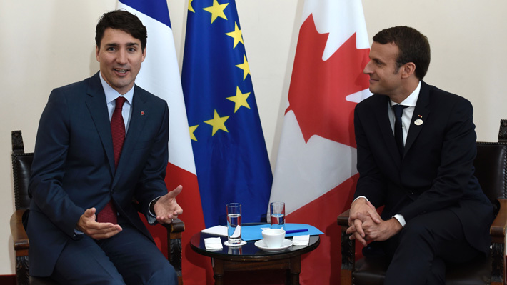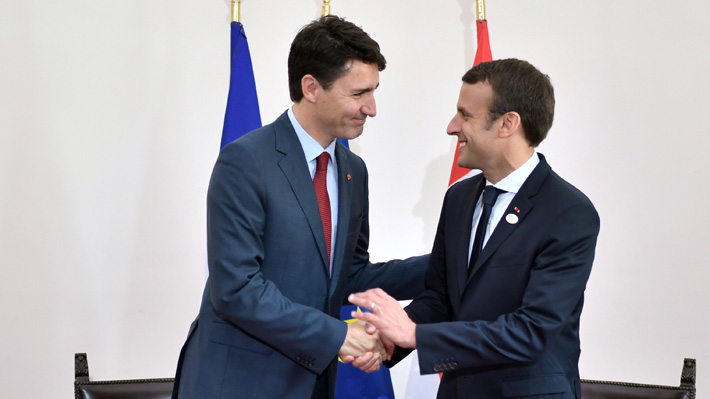 SANTIAGO.- Varias personas comenzaron fantasear con este encuentro, apenas Emmanuel Macron salió elegido Presidente de Francia, a principio de mes. ¿Qué pasaría cuando este nuevo Mandatario conociera al también joven, guapo, y de ojos azules, Primer Ministro canadiense Justin Trudeau? ¿Hablarían en francés? Los suspiros de muchas y muchos que imaginaron este momento al fin tienen un motivo de ser: Se juntaron, fueron fotografiados, hay un video y sí, hablan en el idioma del amor.