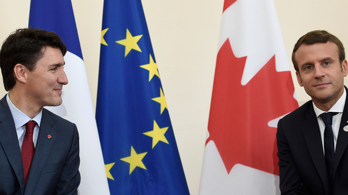 “La amistad franco-canadiense tiene una nueva cara. Justin Trudeau, tenemos que responder a los desafíos de nuestra generación”, escribió el francés en su cuenta de Twitter con el esperado video: