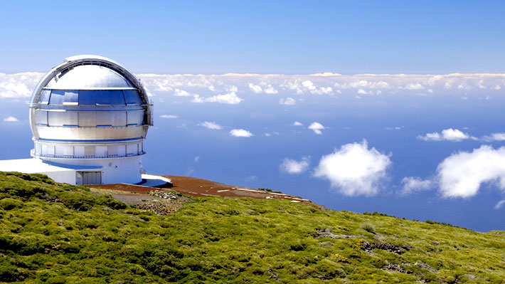 El Roque de los Muchachos es un pico rocoso que marca el hito más alto de la isla de La Palma, en Canarias, España. Con 2.426 metros por sobre el nivel del mar esta área presenta una situación geográfica y climática que lo hace ideal para la observación de las estrellas gracias a un cielo prístino e iluminado.