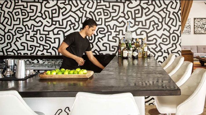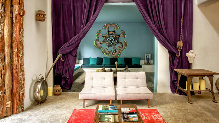De ahí que no sorprenda, por ejemplo, encontrarse con un patio techado donde se hallan hermosas y muy costosas alfombras persas, además de cortinas de terciopelo, muebles de diseñador, esculturas y pinturas de artistas de renombre.